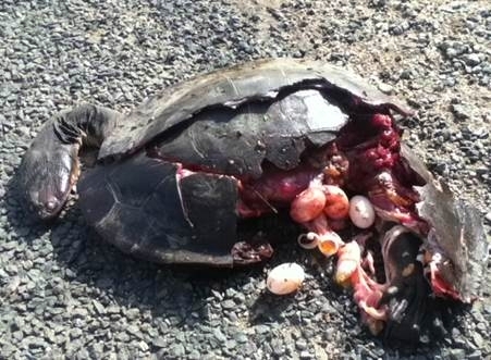 Current thinking is that the major underlying cause of turtle declines is predation on eggs and nesting females by foxes. There are also many other factors that contribute to the problem include deaths on roads, death in fish traps and from hook and line fishing, habitat changes from water management, drowning in water regulation structures, the effects of pesticides, salinity and polychaete worms, direct (competition) and indirect (reduction of ribbon weed) influences of the introduction of European carp, and probably other factors. The extended drought of the early 2000’s exacerbated many of these problems, resulting in disease and a decline in numbers. Current dry weather across Queensland and NSW is also likely to adversely affect turtles and other aquatic life.